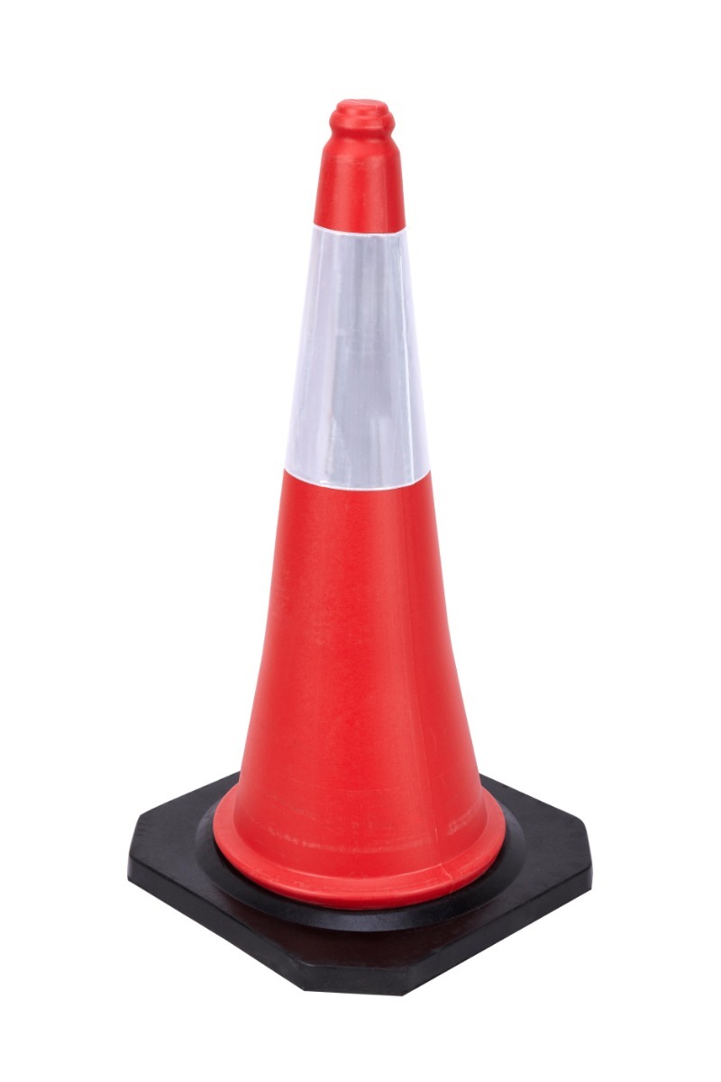 Cono Naranja - Rigido - Con 2 Banda Reflectiva De 10 Cm - Base Maciza De Goma - 100 Cm De Altura - Marca Rfx.