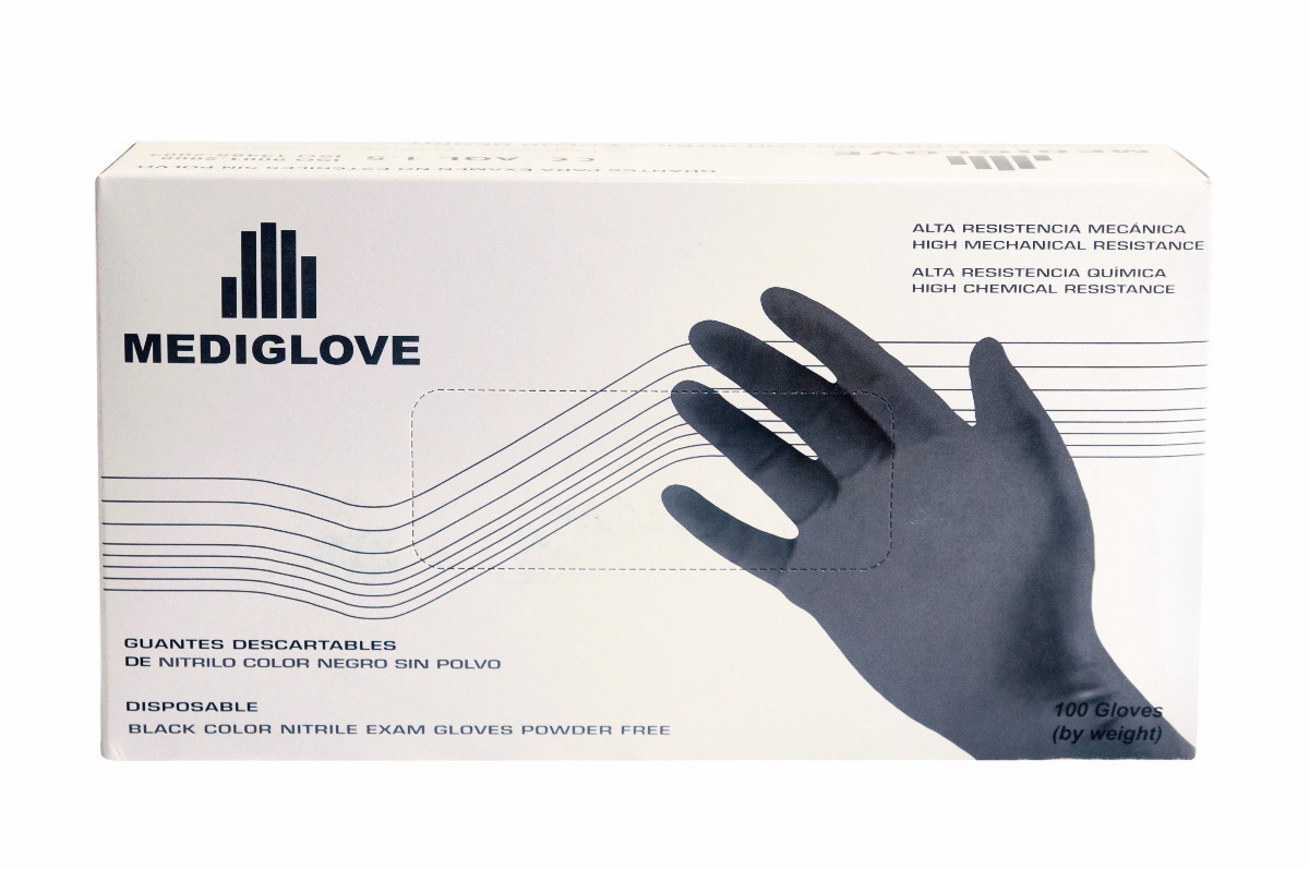 Guante De Nitrilo Negro Refor. Descartable X 100 Unidades. – Marca Mediglove. Talle S