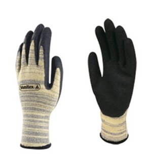 Guante Sin Costura Anticorte Y Resistente A Temperaturas De 300 °C. Palma Recubierta Con Latex Negro. Talle 9. - Marca Deltaplus.GUANTES RESISTENTE AL CORTE | PROTECCION DE MANO
